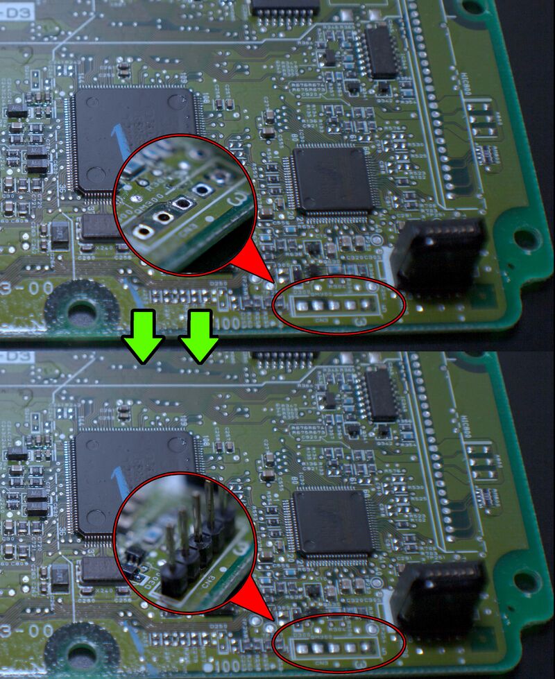 Solder 3 jumper wires between the points shown in the picture.