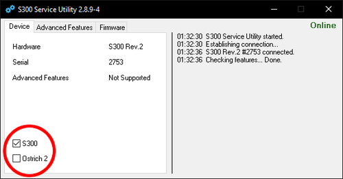 By default, the device operates in the S300 mode with the S300 Manager software.