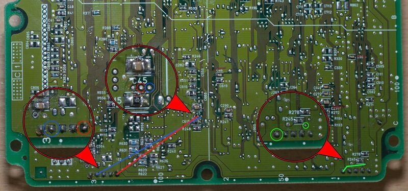 Five components must be modified: CN2, CN3, J270, J250, R243