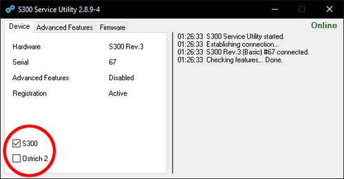 By default, the device operates in the S300 mode with the S300 Manager software.